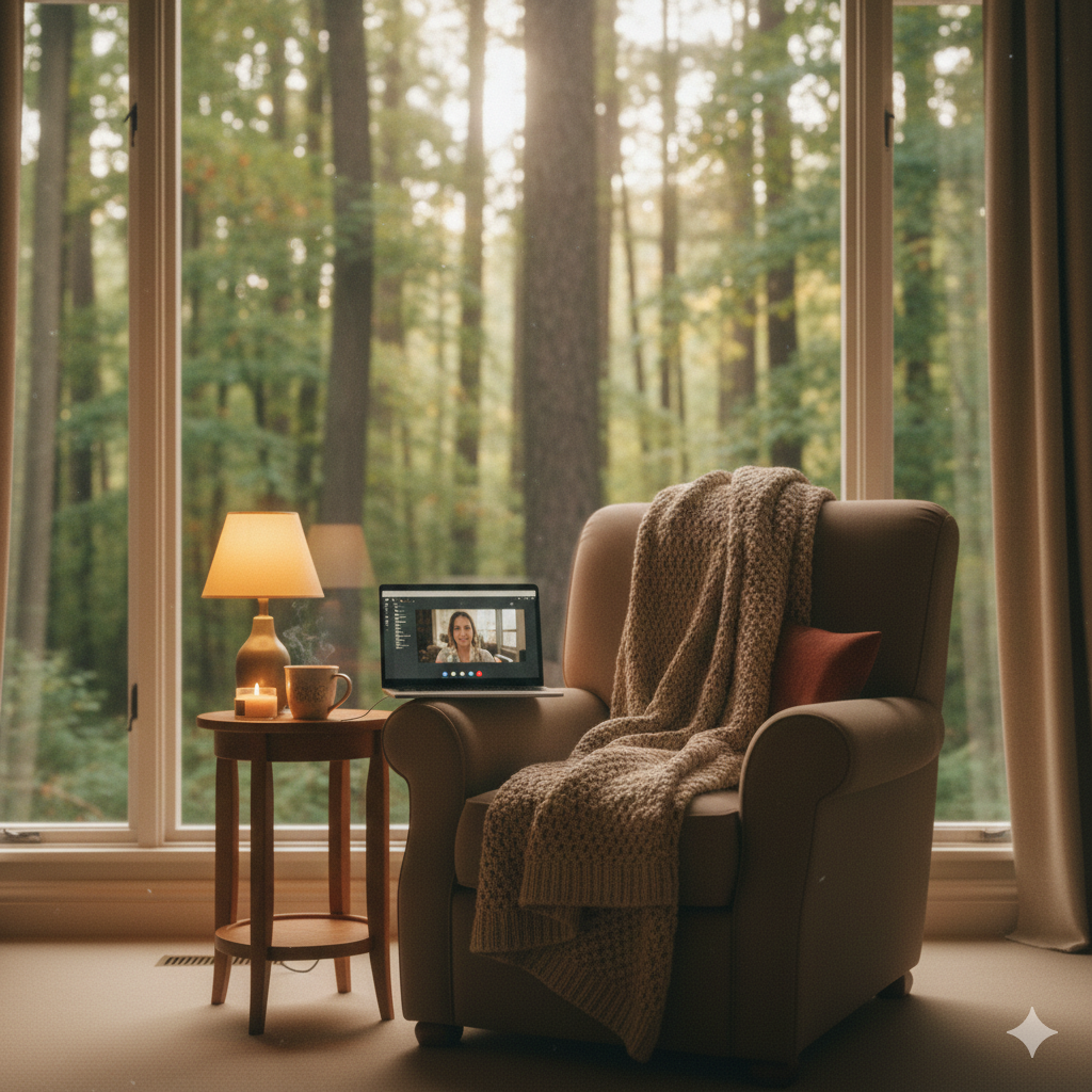 Manchmal erlaubt es der Alltag nicht, das Haus zu verlassen. Vielleicht ist die Belastung gerade so hoch, dass jeder zusätzliche Weg eine Überforderung darstellt. Oder Sie leben an einem Ort, der es Ihnen schwer macht, eine spezialisierte traumasensible Begleitung zu finden.